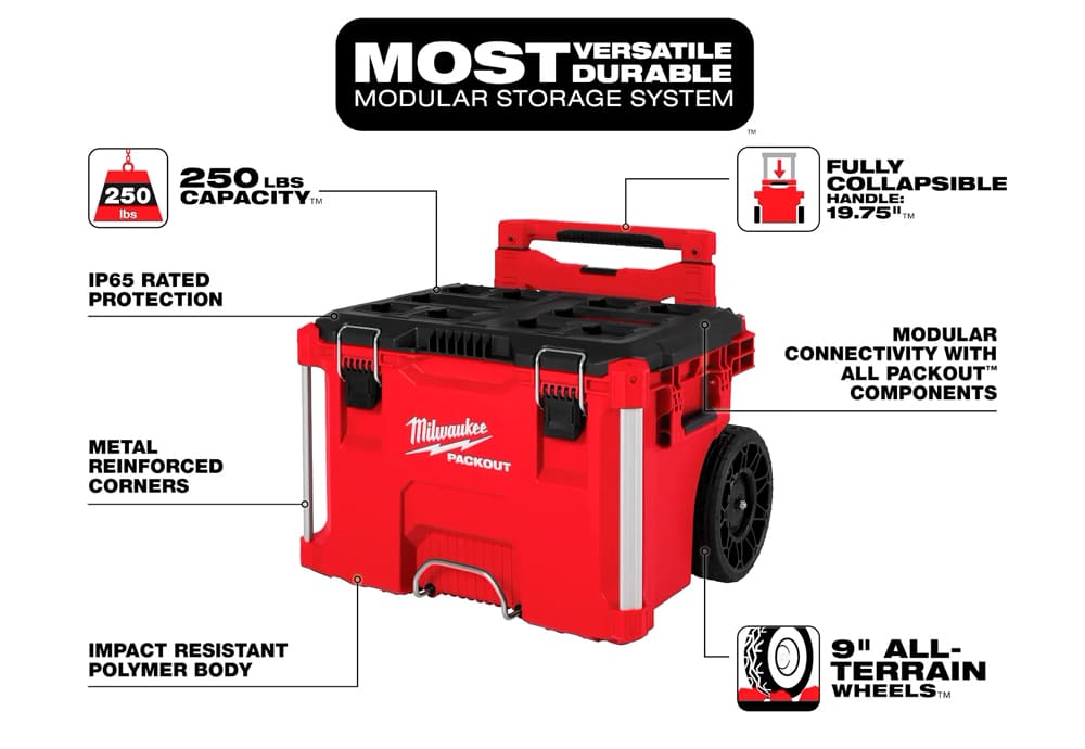 PACKOUT™ de MILWAUKEE® es el sistema de almacenamiento modular más versátil y duradero de la industria.
