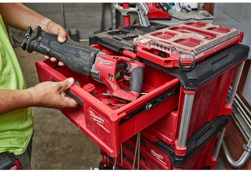 Transforma tu sistema PACKOUT con esta caja de herramientas de doble cajón: 50?lb de capacidad, cuerpo de polímero resistente a impactos, esquinas reforzadas y rieles metálicos con retén de seguridad para mantener tus herramientas bloqueadas y organizadas en cualquier traslado.